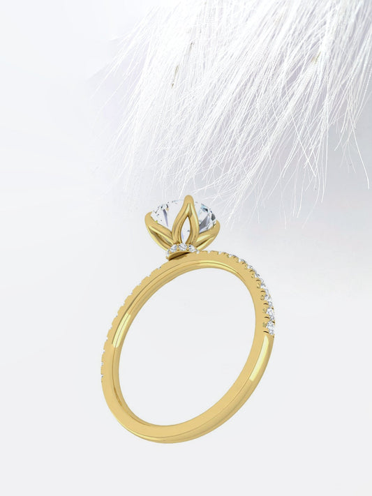 1.0 CT Round Shaped Moissanite Solitaire Pave Style Engagement Ring