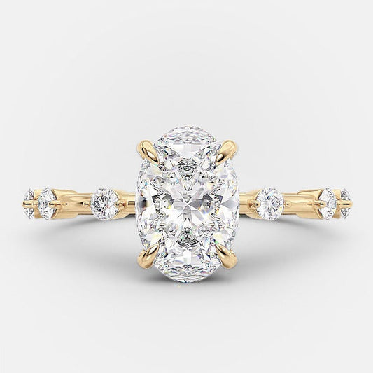 1.50ct-2.50ct Elongated Oval Cut Petite Pave Moissanite Diamond Engagement Ring