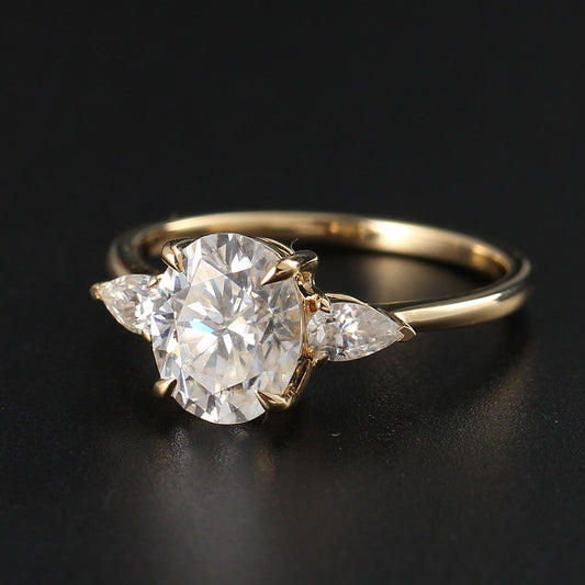 2.44 CT Oval Moissanite Three Stone Engagement Ring