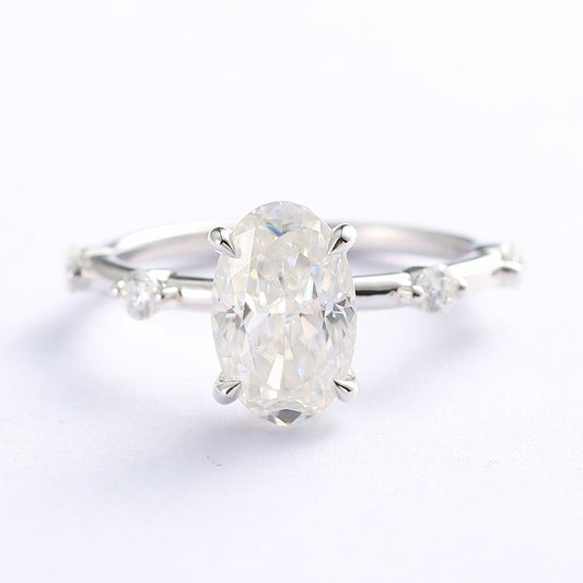 1.75 CT Oval Moissanite Pave Setting Engagement Ring