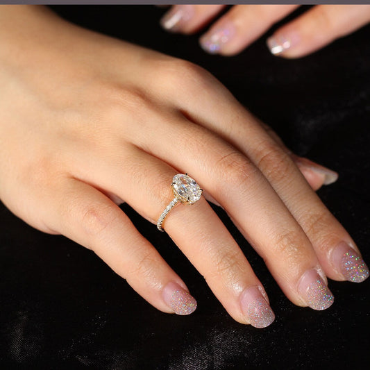 2.50 CT Oval Moissanite Pave Setting Engagement Ring