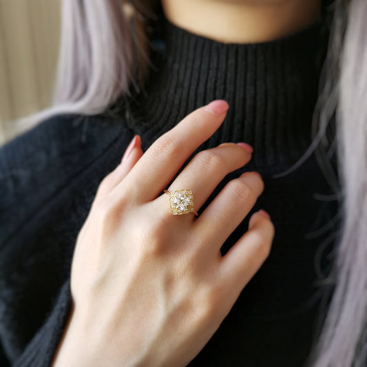 0.25 CT Round Shaped Moissanite Cluster Engagement Ring