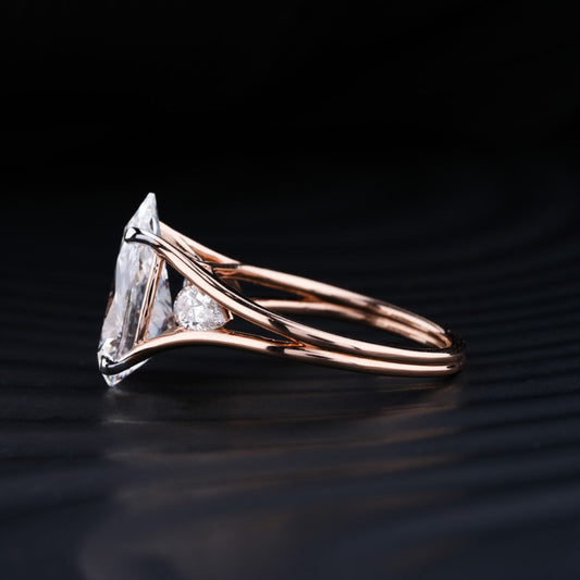 2.0 CT Princess Cut Pear Cut Split Shank Moissanite Engagement Ring