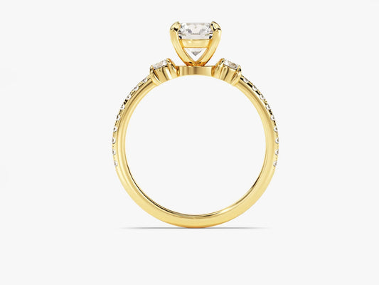 1.0CT Round Cut Diamond Three Stone Pave Setting Moissanite Engagement Ring