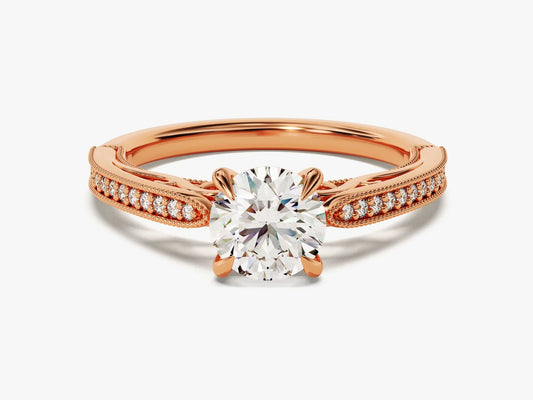 1.0CT Round Brilliant Diamond Milgrain Pave Setting Moissanite Engagement Ring