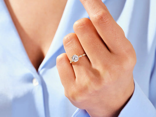 1.0 CT Round Cut Diamond Pave Setting Moissanite Engagement Ring