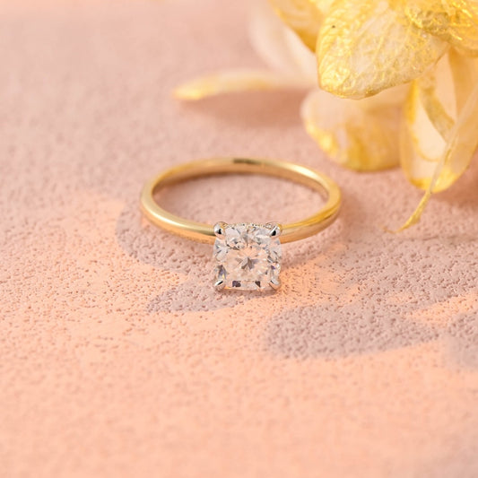 1.0 CT Cushion Moissanite Hidden Halo Engagement Ring