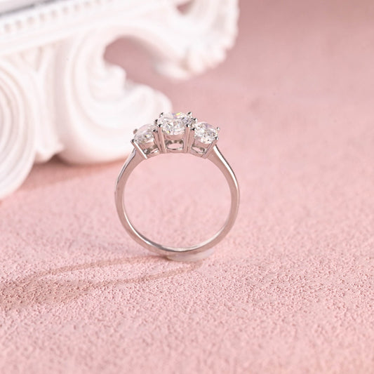 1.5 CT Round Moissanite Three Stone Engagement Ring