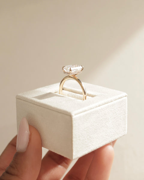 1.0 CT Emerald Cut Hidden Halo Moissanite Engagement Ring
