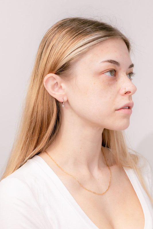 0.08 TCW Round Moissanite Star Huggies Earrings