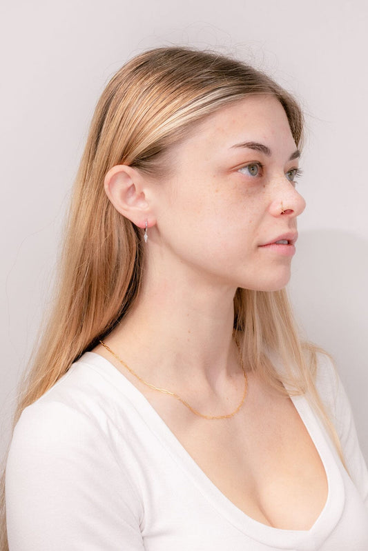 0.08 TCW Round Kite Drop Moissanite Huggies Earrings