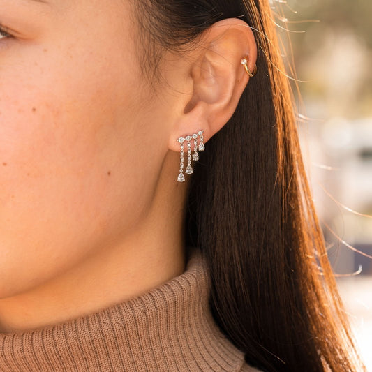0.80 TCW Round Moissanite Trio Dangle Earrings