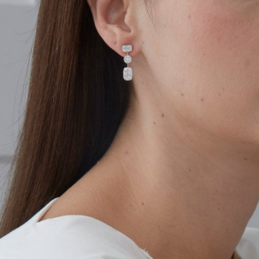 1.20 TCW Round & Marquise Moissanite Diamond Drop Pave Earrings