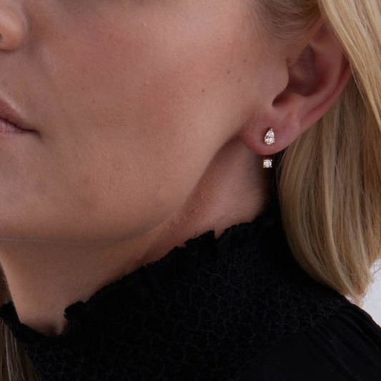 0.80 TCW Pear & Round Moissanite Diamond Ear Jacket Earrings