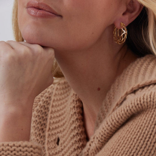 0.53 TCW Round Moissanite Diamond Dentelle Hoops Earrings