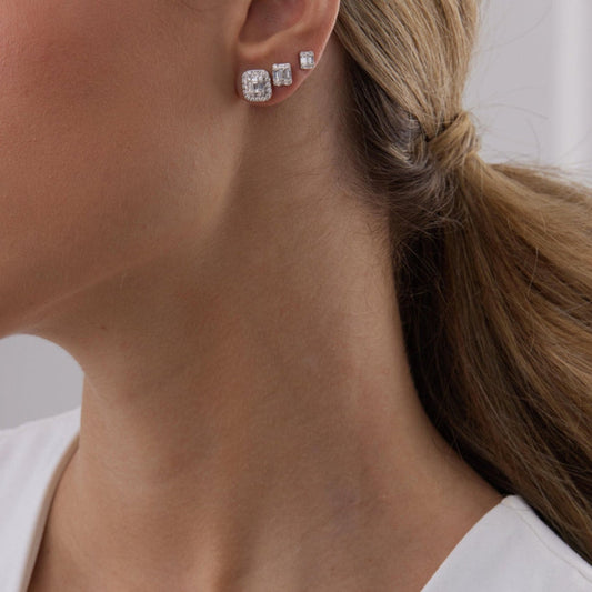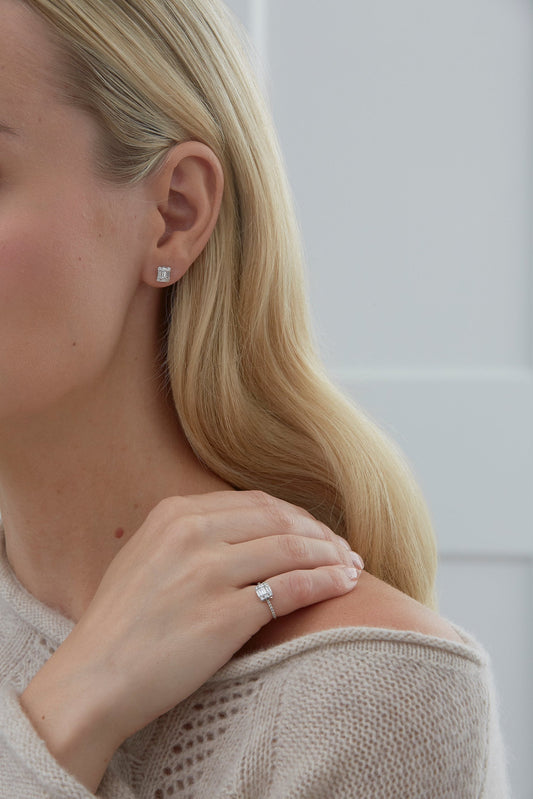 0.31 TCW Round & Emerald Moissanite Diamond Stud Earrings