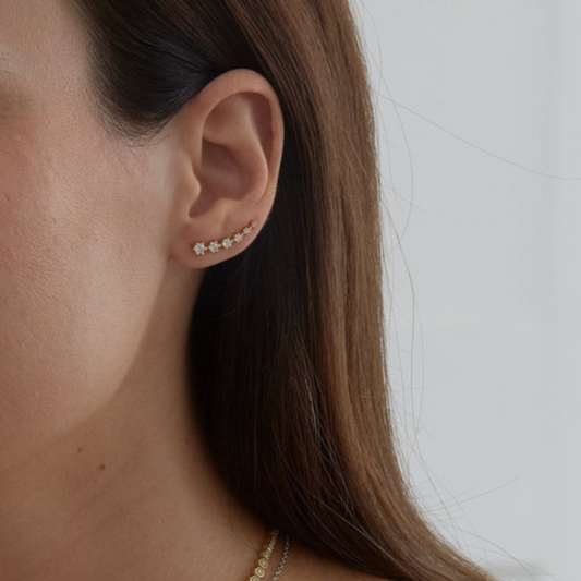 0.12 TCW Round Moissanite Diamond Ear Crawler Earrings