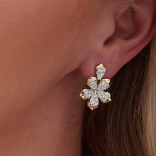 1.39 TCW Round Moissanite Diamond Flower Stud Earrings
