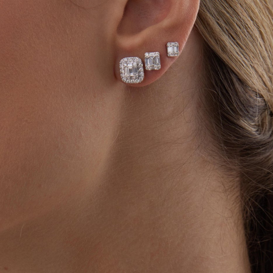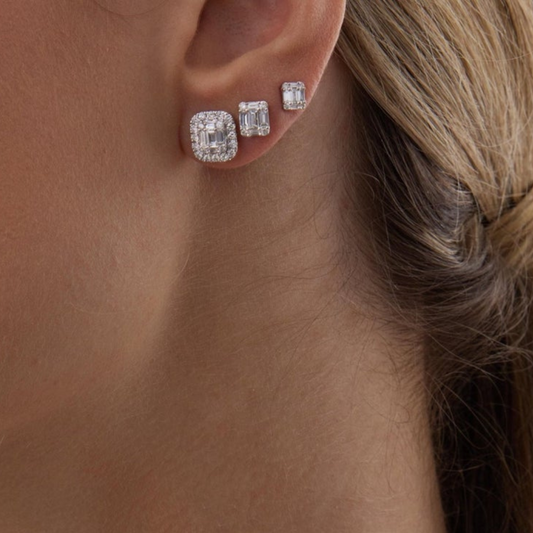 2.0 TCW Round & Baguette Moissanite Diamond Stud Earrings