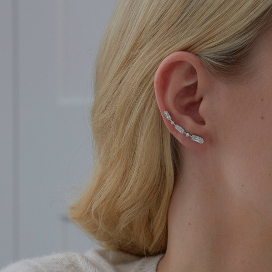 0.46 TCW Round & Baguette Moissanite Diamond Ear Crawler Earrings