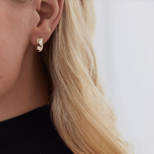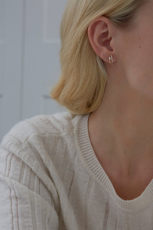 0.49 TCW Round & Marquise Moissanite Diamond Hoop Huggie Earrings