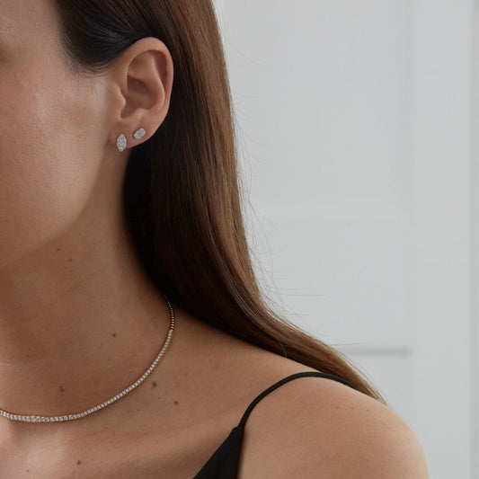0.61 TCW Round & Baguette Moissanite Diamond Stud Earrings