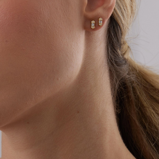 0.20 TCW Round & Baguette Moissanite Diamond Stud Earrings