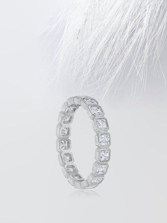 Asscher Cut Bezel Diamond Wedding Band For Women