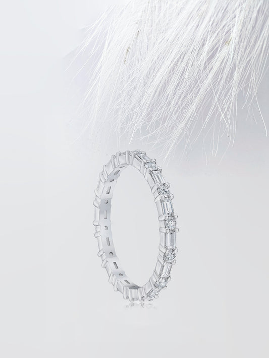 Round & Baguette Cut Eternity Diamond Wedding Band For Women