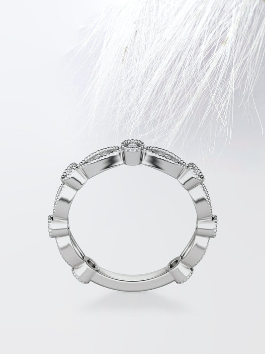 Round Brilliant Cut Curved Vintage Style Bridal Wedding Band