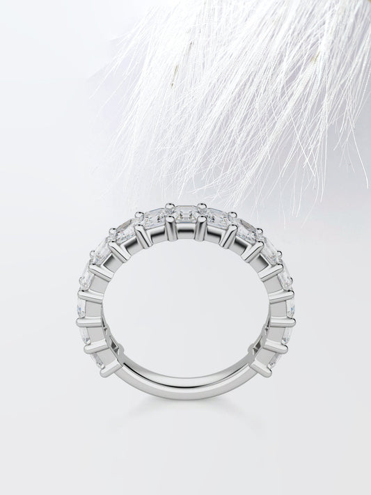 Asscher Cut Semi Eternity (3\\4) Diamond Wedding Band For Her