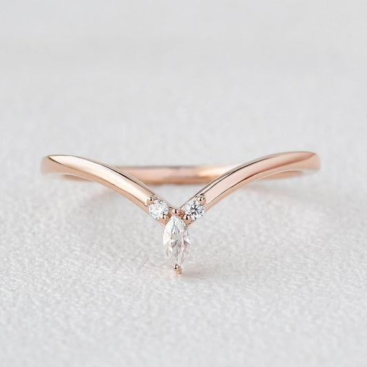 0.10CTW Round & Marquise Cut Curved Stacking Moissanite Wedding Band