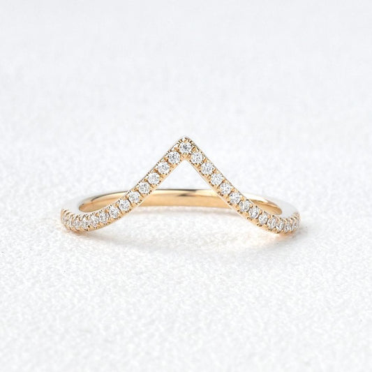 0.20ct Round Cut Moissanite Diamond Chevron Wedding Band