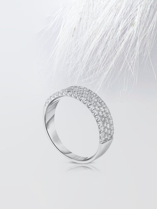 Round Cut Four Row Stackable Pave Diamond Wedding Band For Women