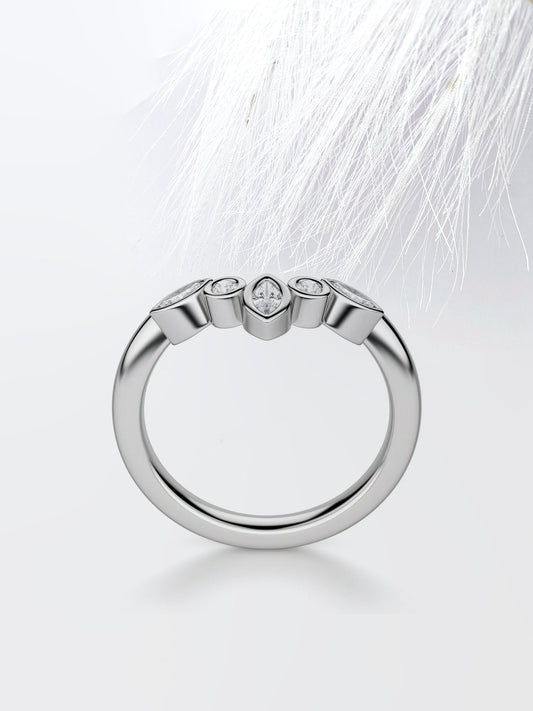 Round & Marquise Cut Curved Diamond Wedding Band For Women