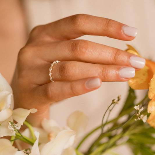 0.70 TCW Marquise Moissanite Bubble Prong Setting Wedding Band