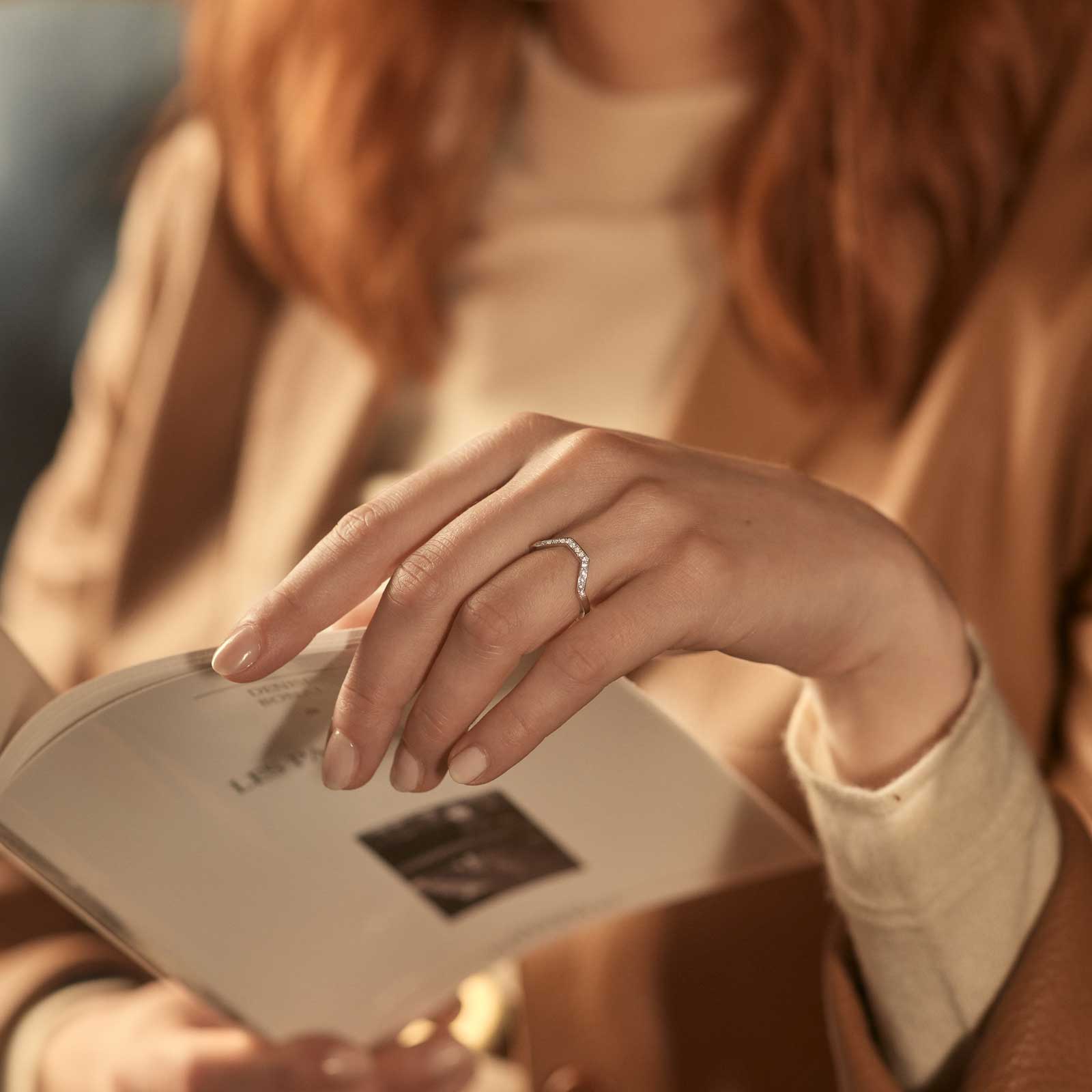 0.12 CT Round Shaped Moissanite Curved Wedding Band