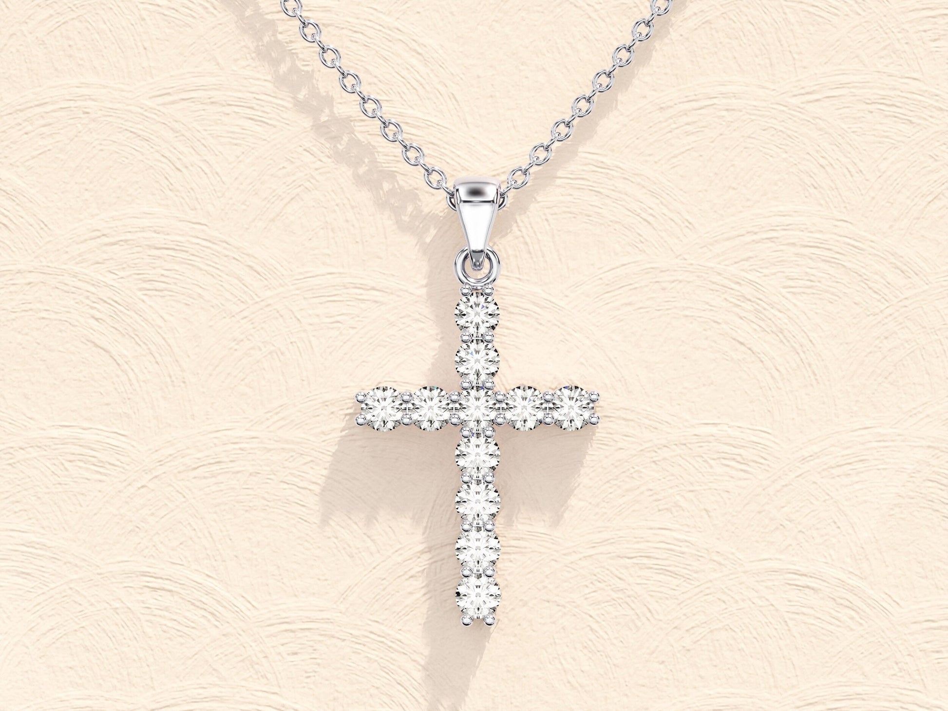 0.22 TCW Round Moissanite Diamond Cross Pendent Necklace