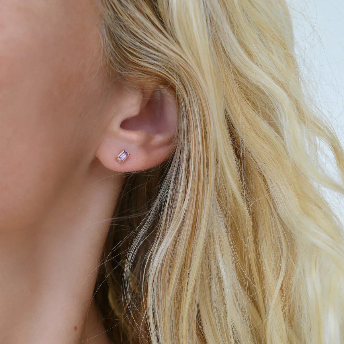 0.28TCW Baguette Cut Amethyst Moissanite February Birthstone Stud Earrings