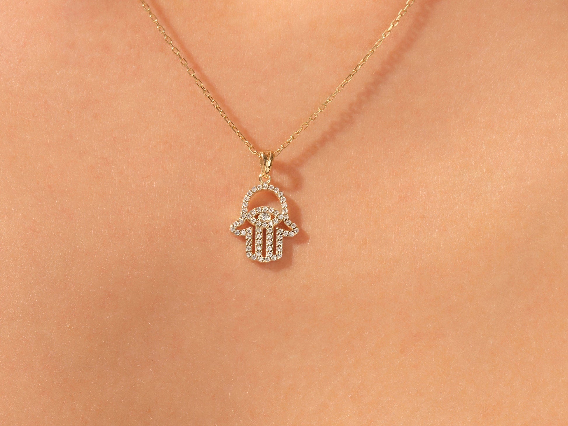 0.31 TCW Round Moissanite Diamond Hamsa Necklace