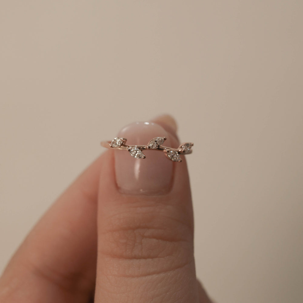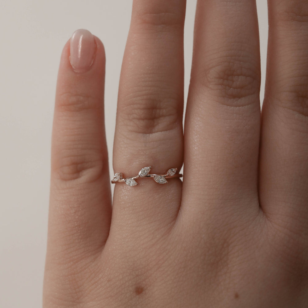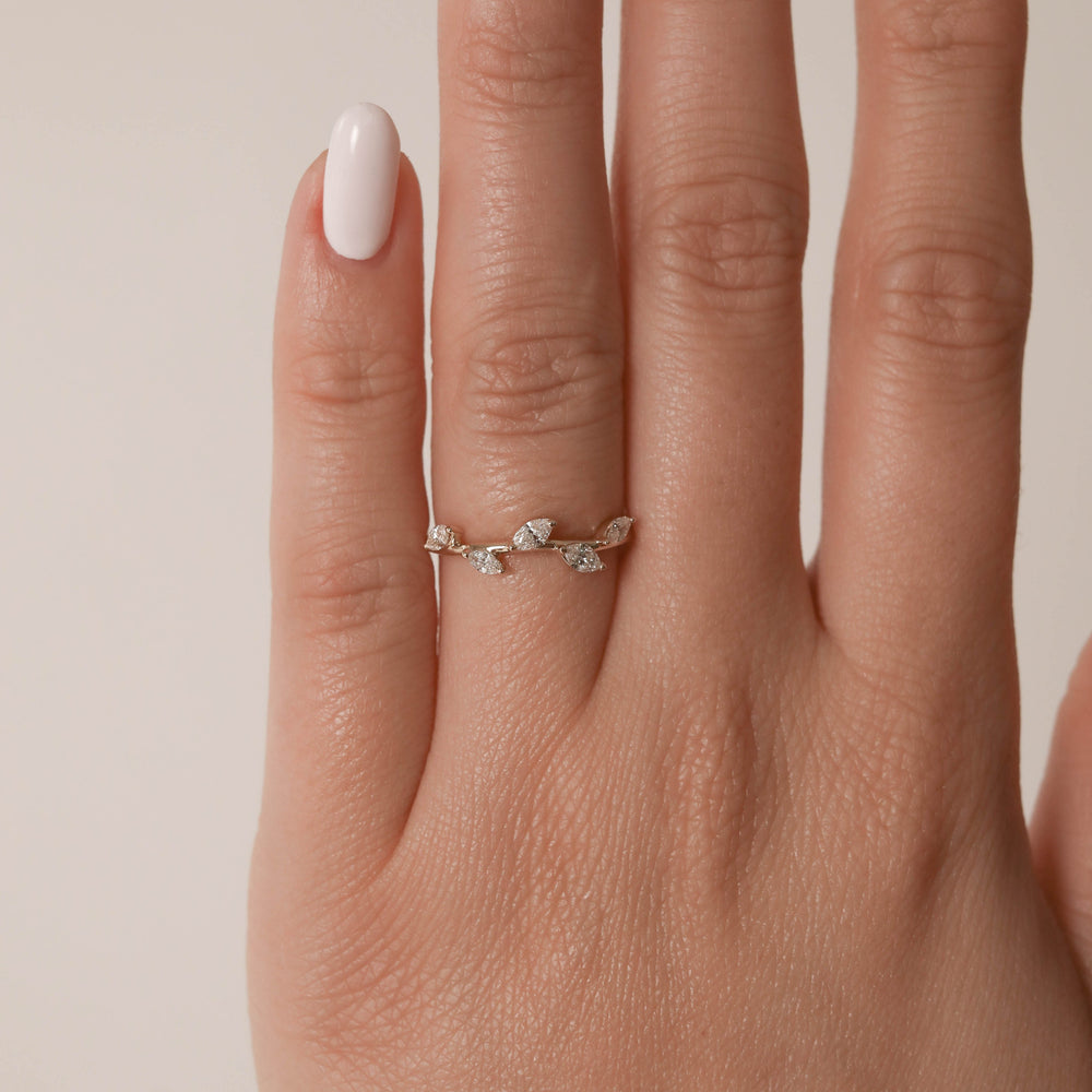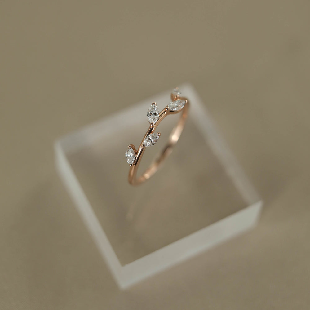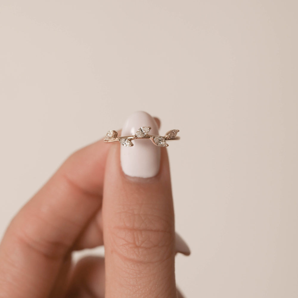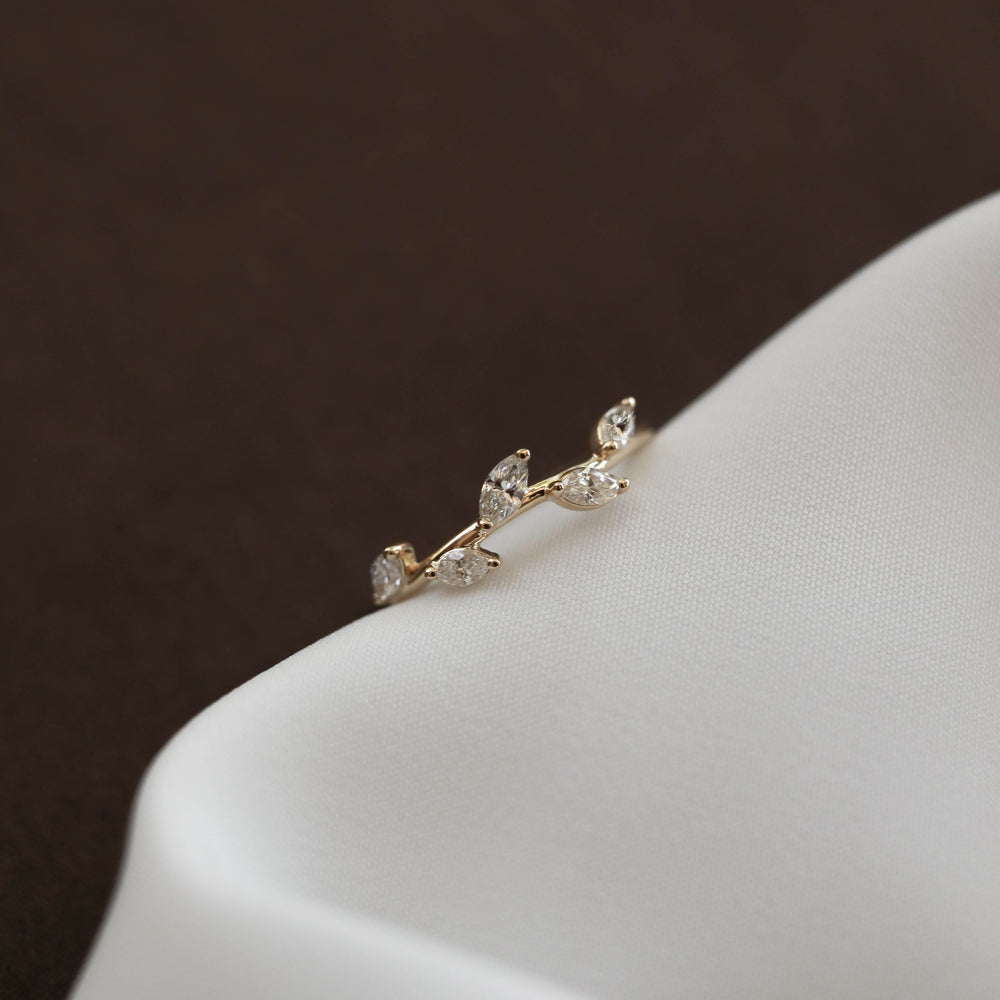 0.33ct Marquise Cut Twig Moissanite Diamond 5 Stone Wedding Band