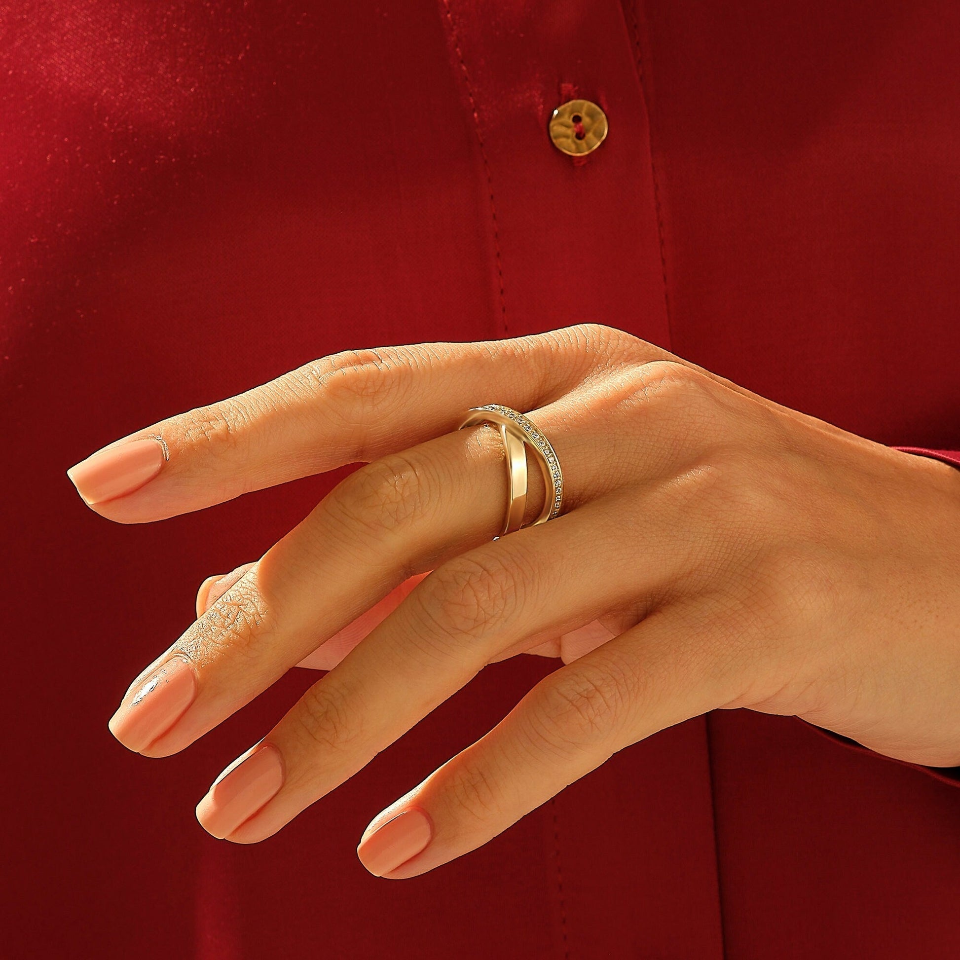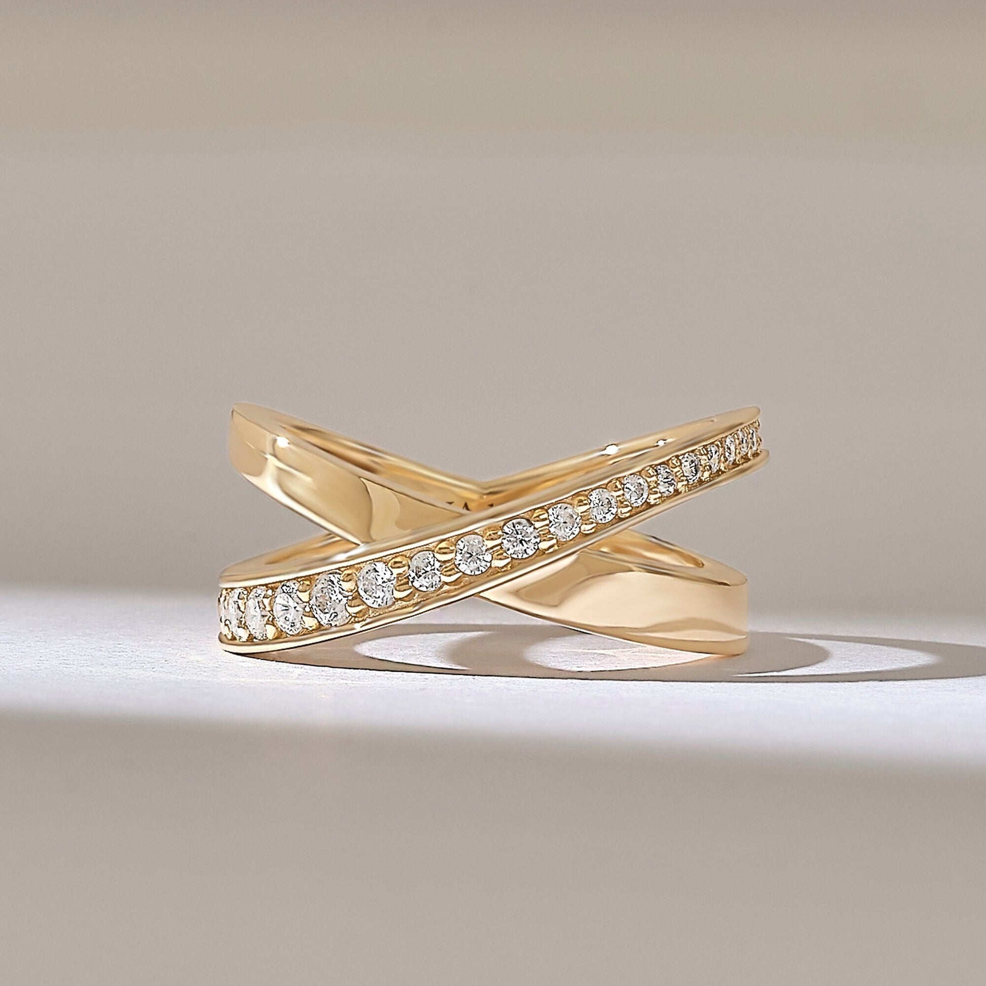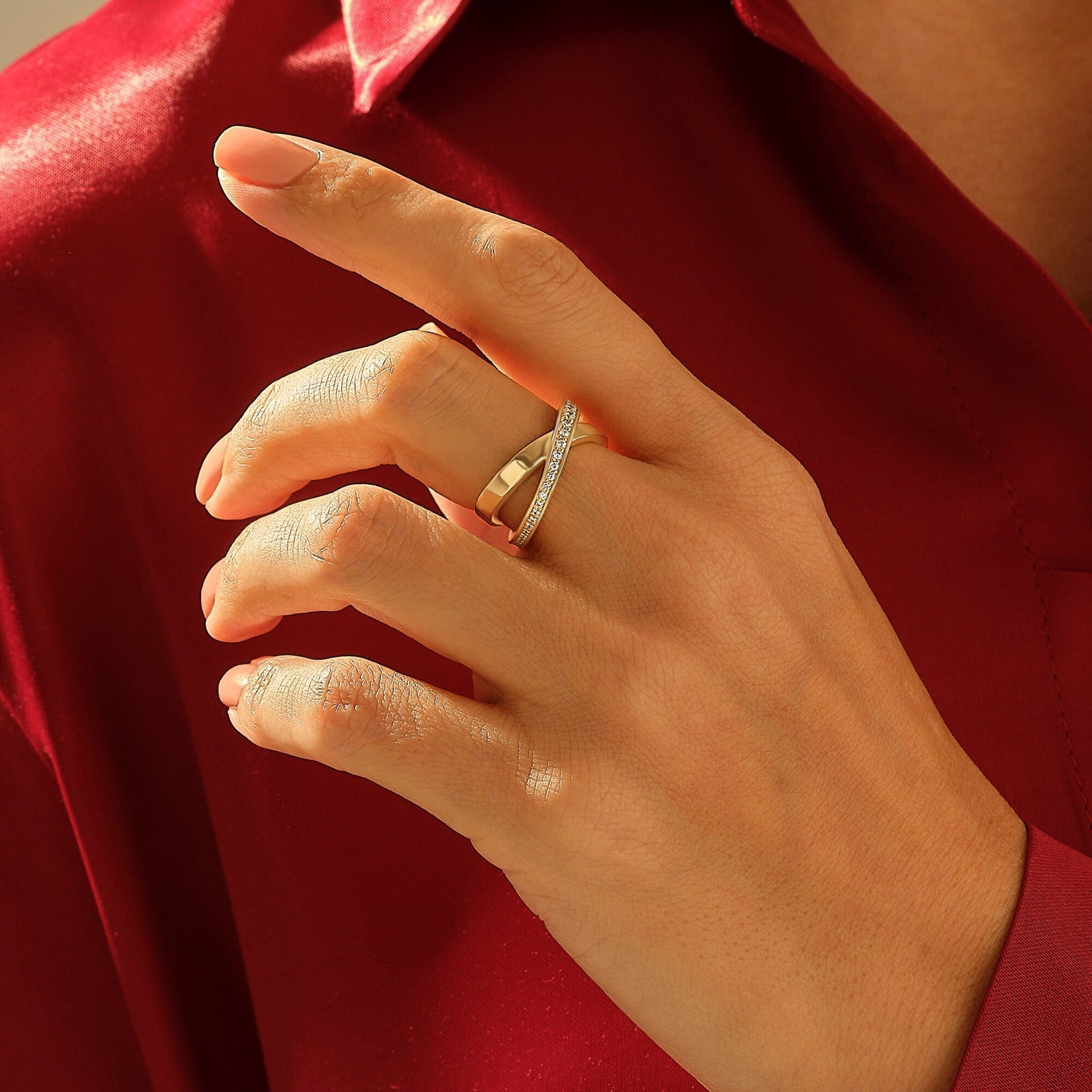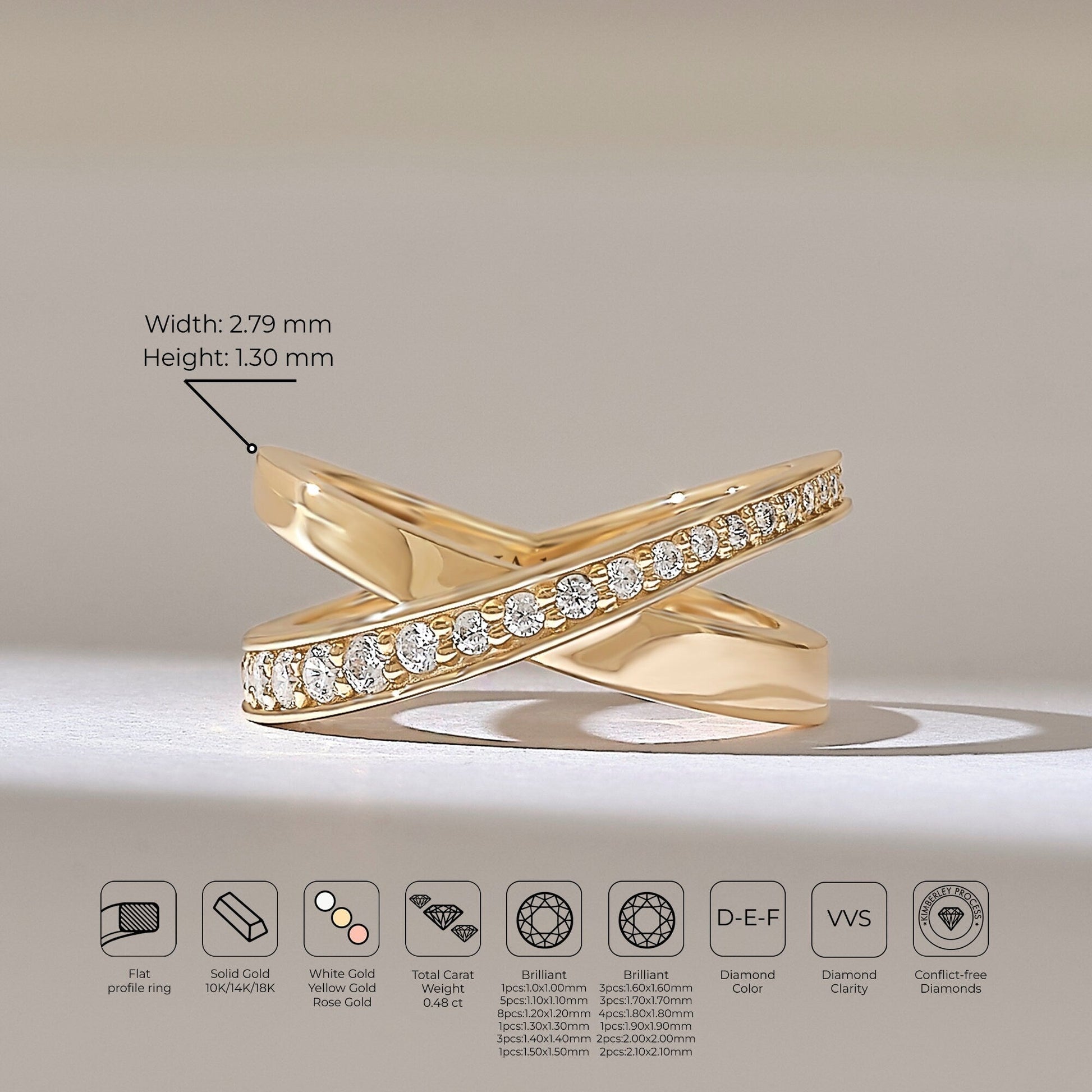0.35CT Round Thick Moissanite Diamond Crossover Wedding Band