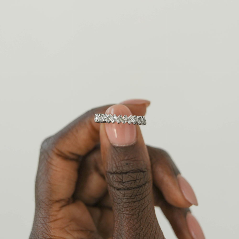 0.44ct Baguette And Round Moissanite Half Eternity Diamond Wedding Band