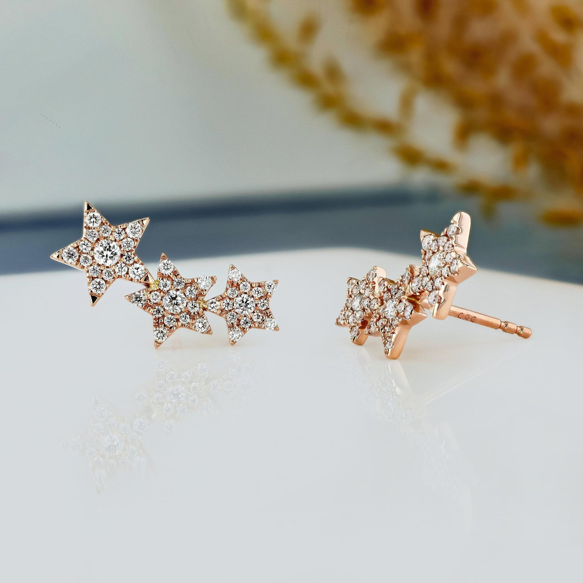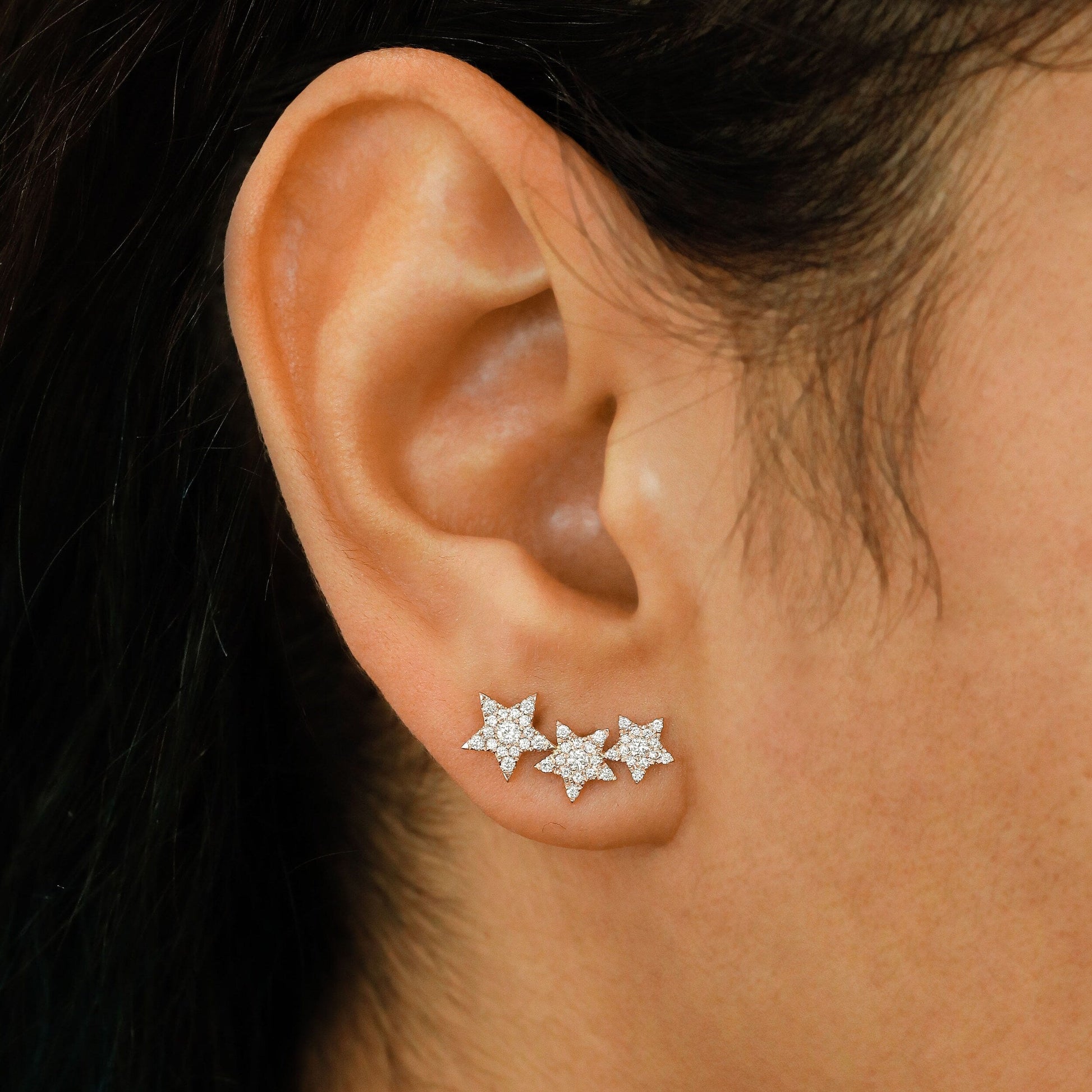 0.45 TCW Round Moissanite Diamond Trio Ear Crawler Earrings