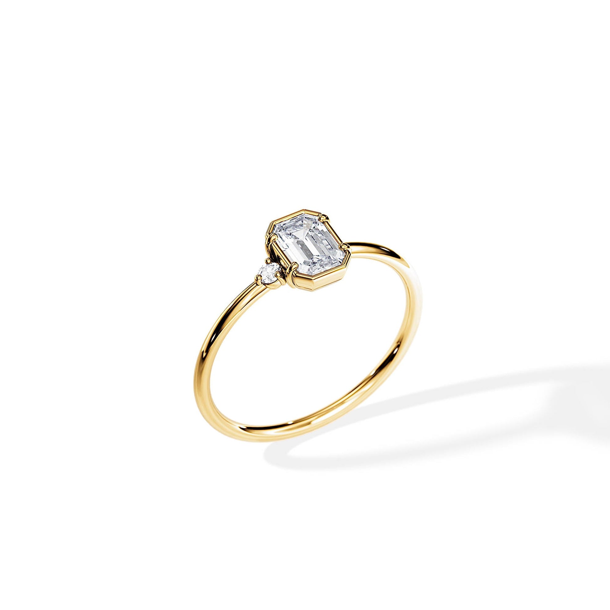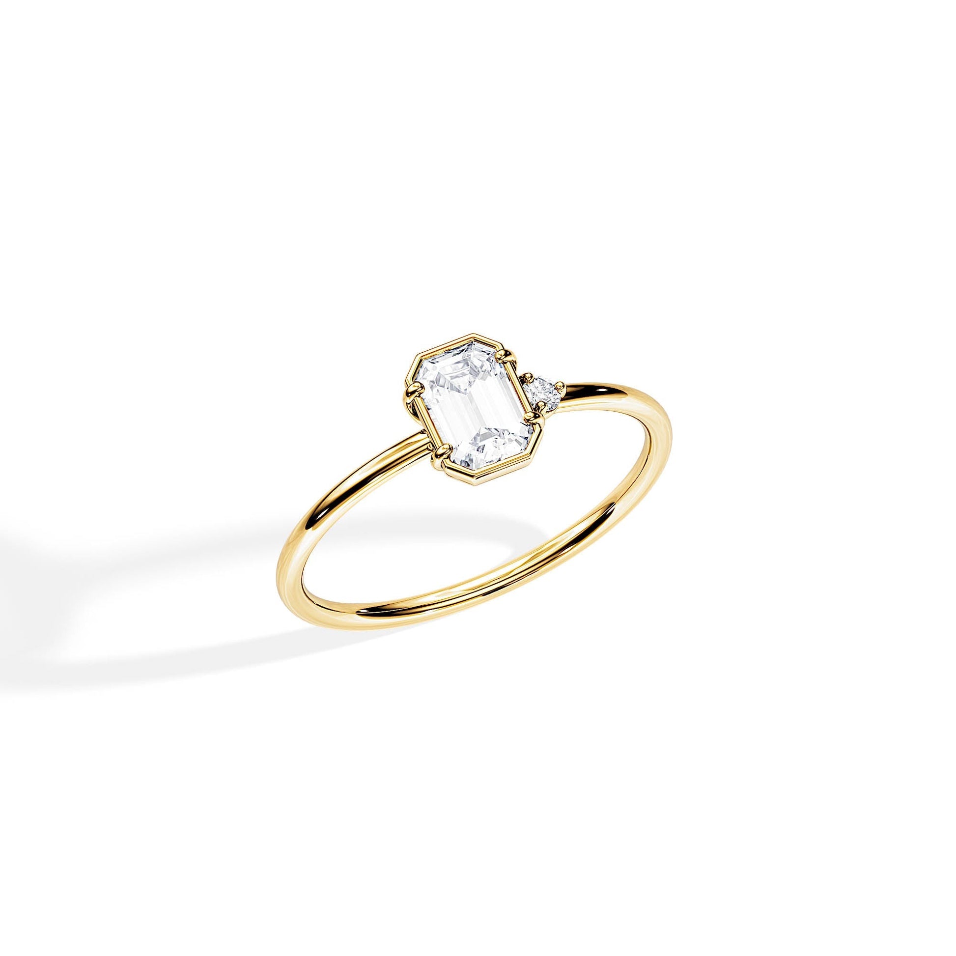 0.50 CT Emerald Cut Moissanite Bezel setting Engagement Ring
