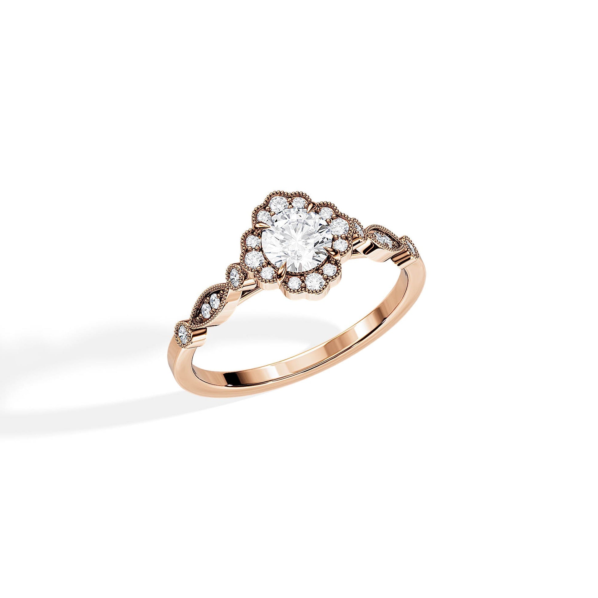 0.50 CT Round Cut Moissanite Halo Engagement Ring