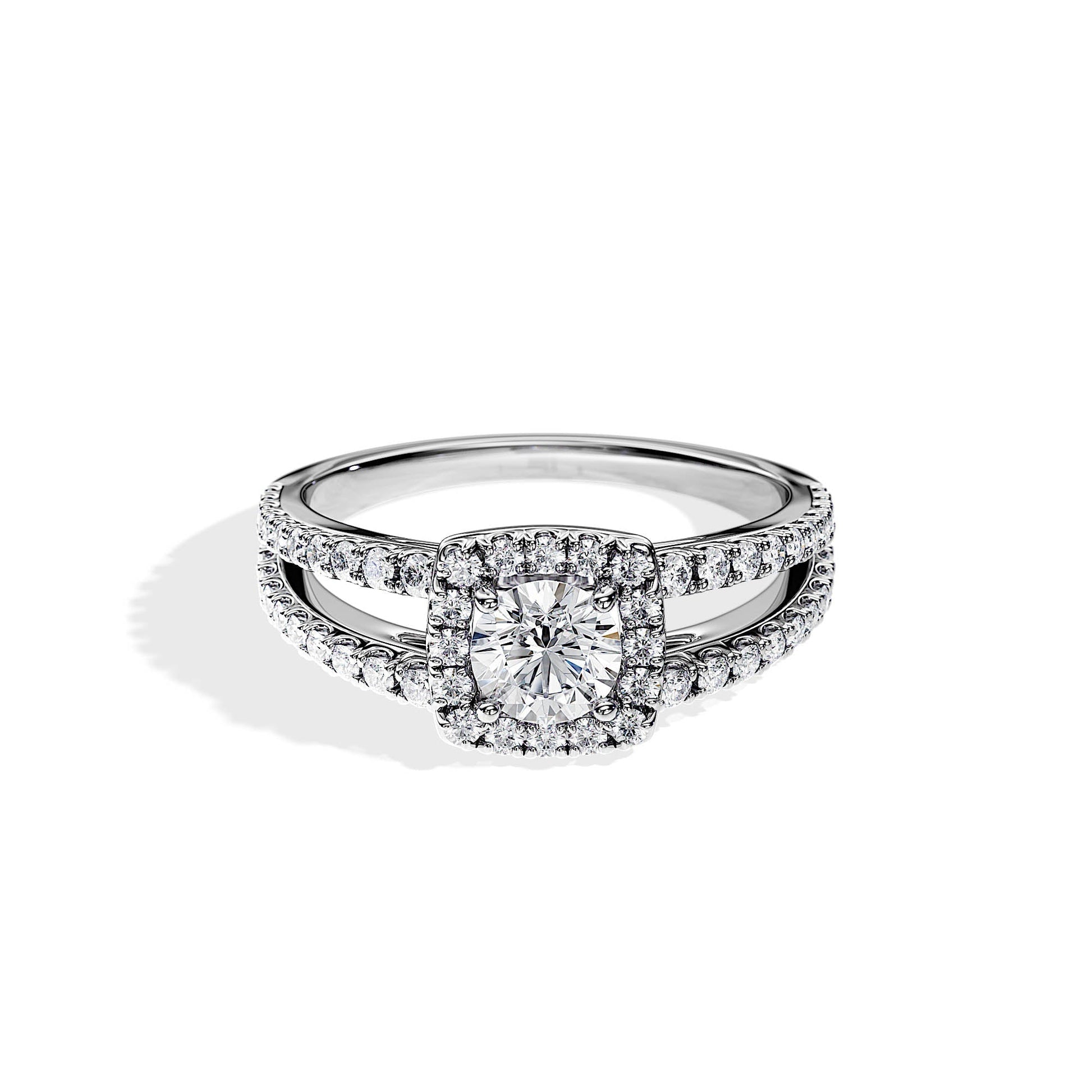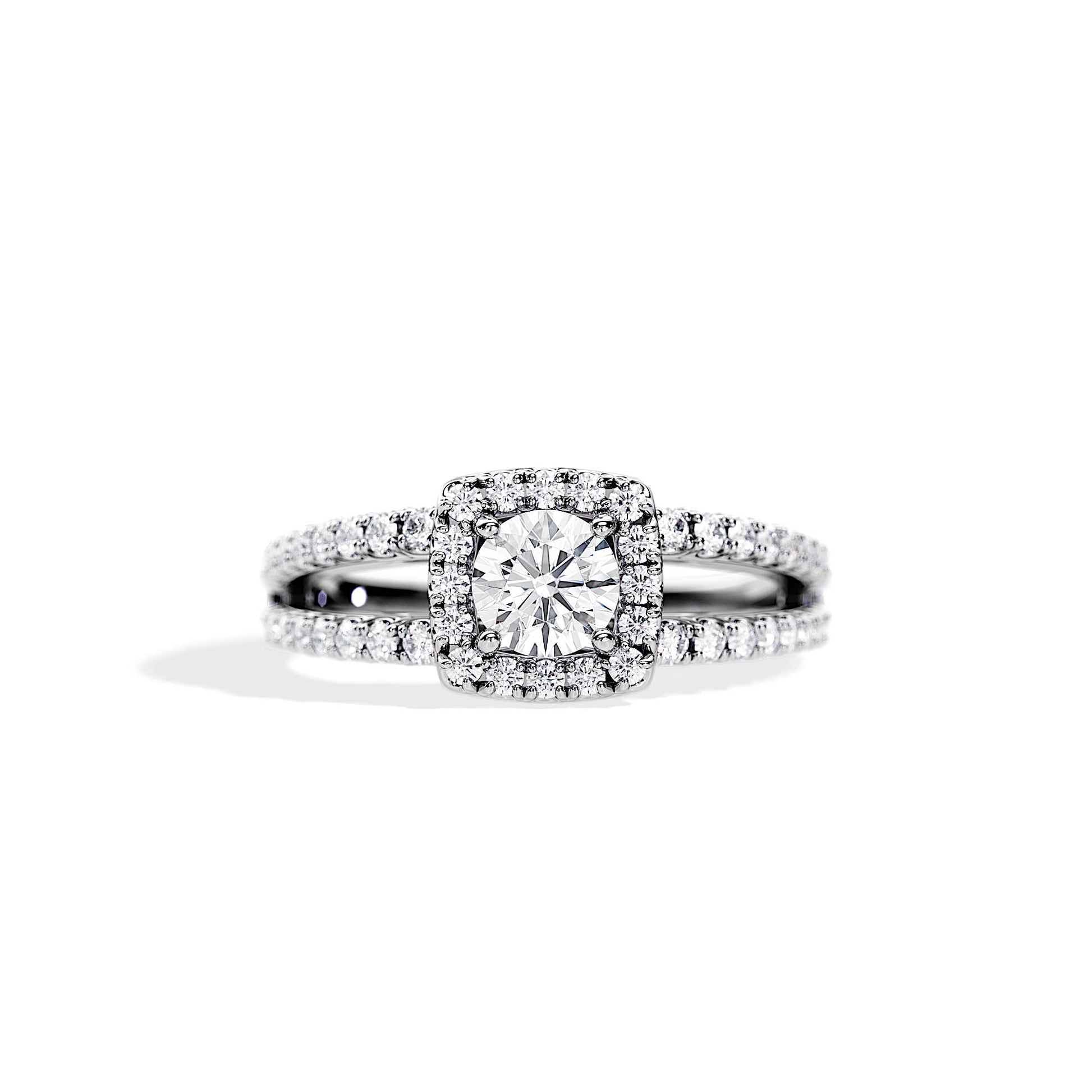 0.50 CT Round Cut Moissanite Halo Split Shank Engagement Ring
