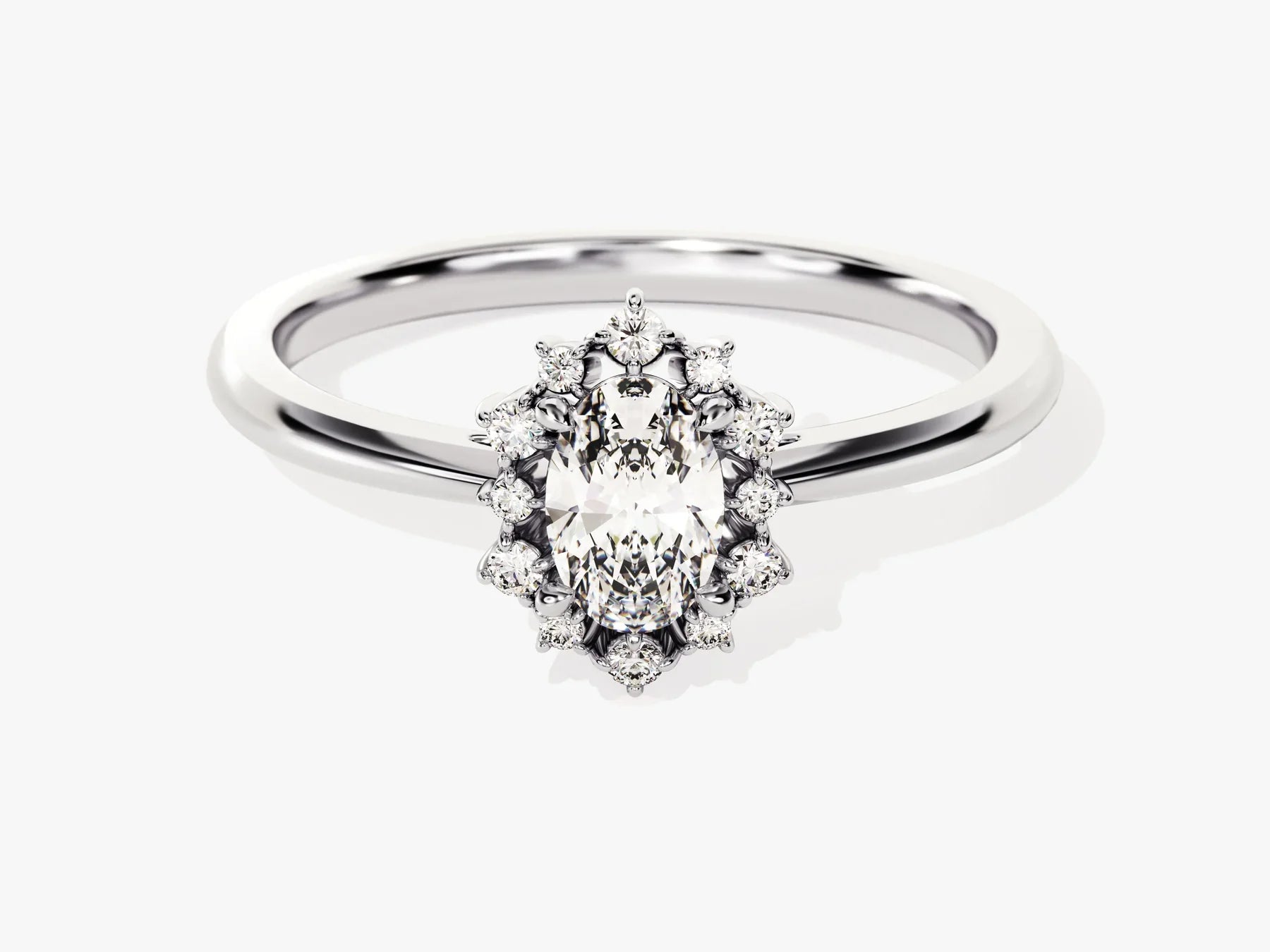 0.50CT Oval Diamond Unique Halo Setting Moissanite Engagement Ring