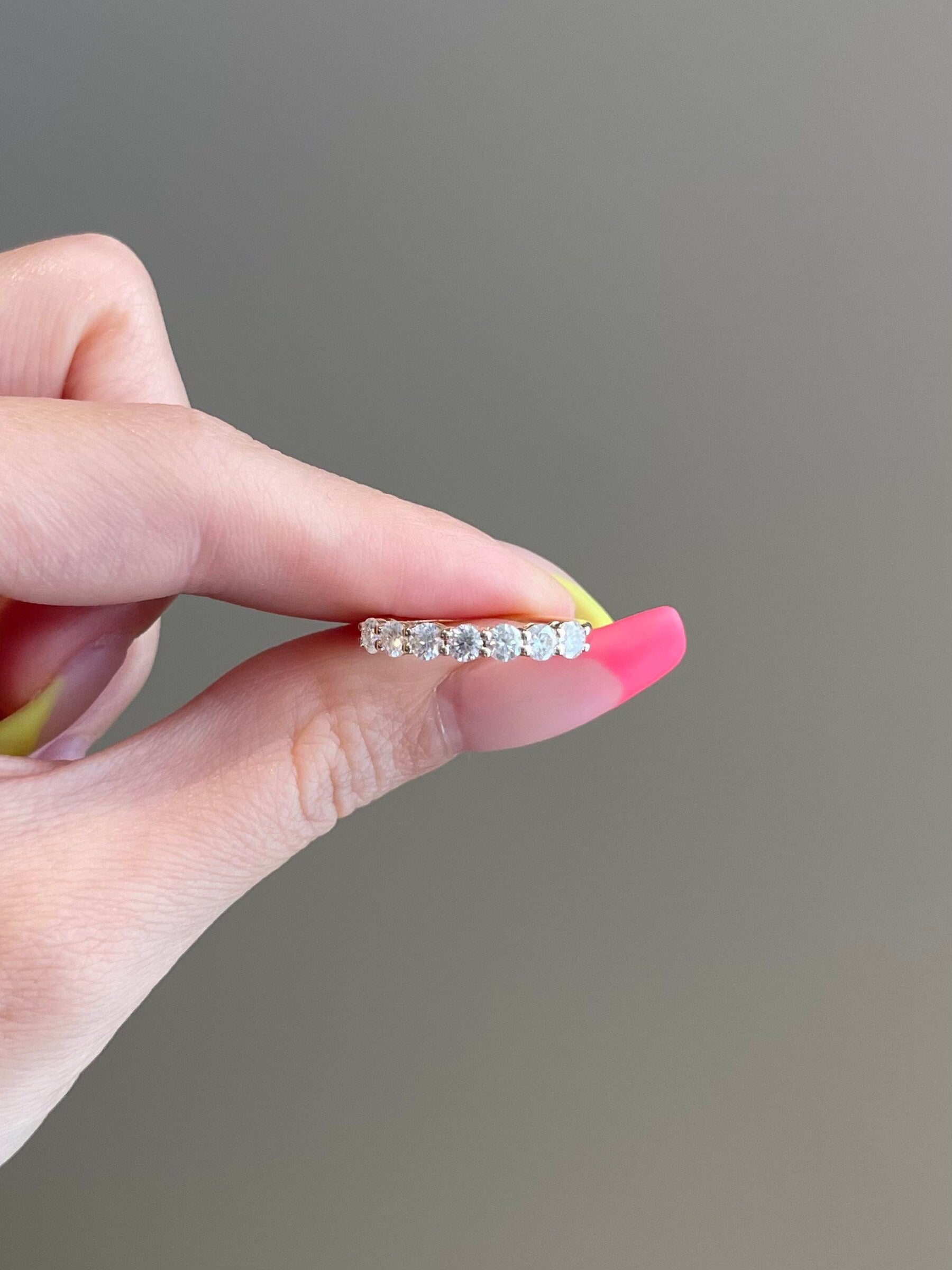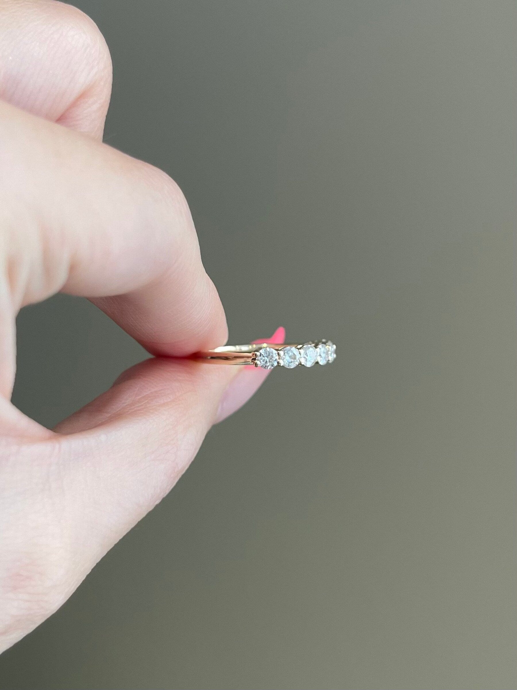 0.70 TCW Round Shaped Moissanite Seven Stones Wedding Band