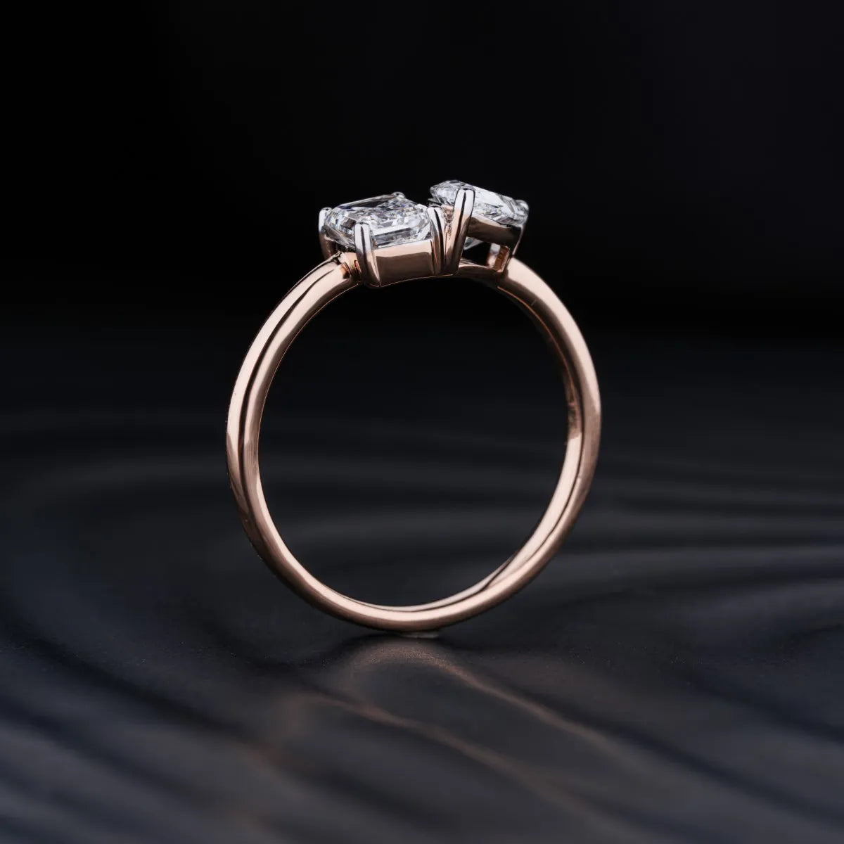 1.5 CT Emerald & Pear Shaped Moissanite Two Stone Engagement Ring